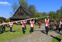 V sobotu 30. dubna jsme přijali pozvání k našim přátelům do polské Pszczyny. V místním skanzenu jsme jim měli postavit máj. Kolem desáté hodiny dopoledne jsme spolu se Starou gardou vyjeli od klubu. Po příjezdu jsme si nachystali vše potřebné a kolem druhé hodiny jsme začali s našimi polskými přáteli stavět máj. Přitom jsme si zatančili několik pásem a zazpívali písničky, typické pro stavění máje.