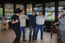Po vystoupení jsme se převlékli a odnesli všechny věci do autobusu, tedy až na cimbál. Ten zůstal připravený pro večerní zábavu, které se zúčastnili všichni členové obou souborů. Kolem deváté hodiny večer jsme se rozloučili, nasedli do autobusu a vydali se zpět do Zubří.