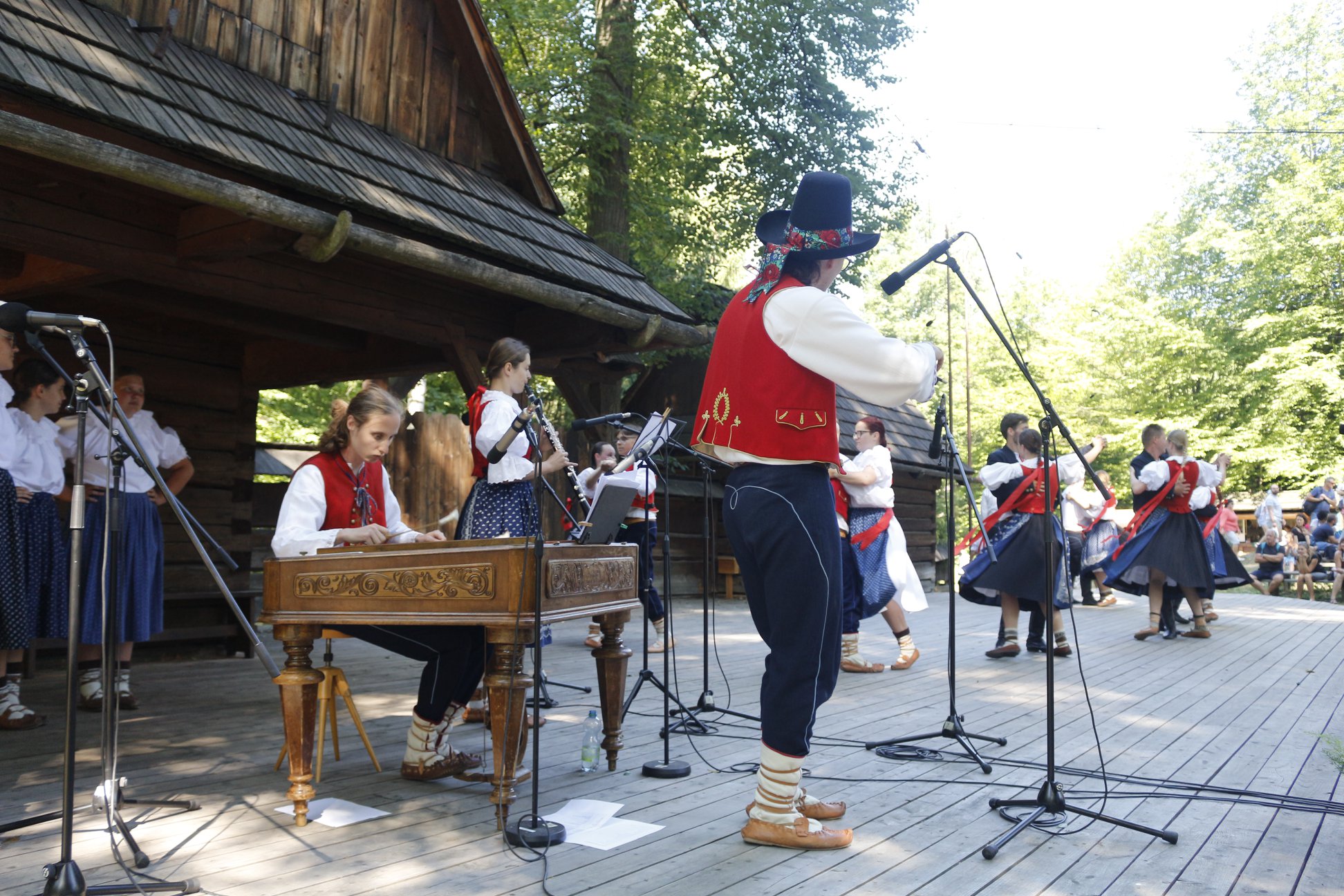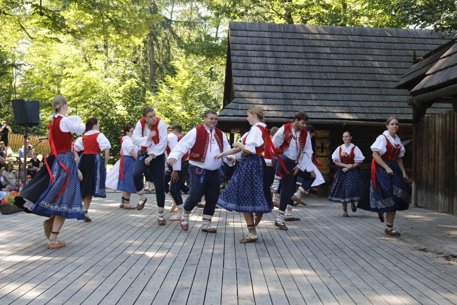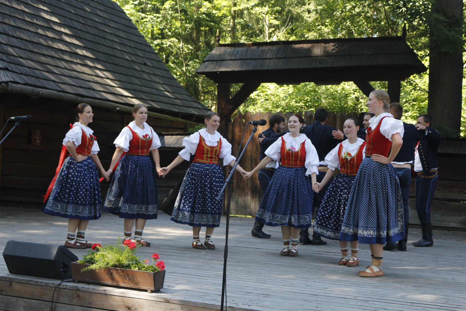 Týden po Rožnovských slavnostech jsme se zúčastnili Zvonečkového jarmarku, který se opět konal ve Valašském muzeu v přírodě v Rožnově pod Radhoštěm. Znovu jsme spojili síly s Malým Beskydem a společně zatančili v Komorním amfiteátru. Tentokrát nám počasí opravdu přálo, byl krásný letní den, který jsme po vystoupení využili i k hromadnému focení souboru.