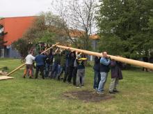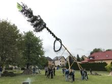 Ještě předním jsme po několikaleté odmlce stavěli máj i ve Valašském muzeu v přírodě v Rožnově pod Radhoštěm, kde se představil celý náš soubor. Závěr května pak patřil jako každý rok kácení máje na Starém Zubří a v Zašové, kde se nám povedlo trefit deštník!
